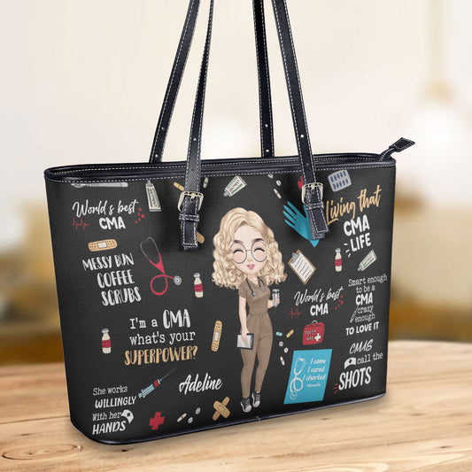 The Best Nurse - Personalized Custom Nurse Leather Tote Bag