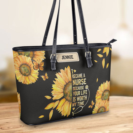 Sunflower Nurse - Personalized Custom Nurse Leather Tote Bag
