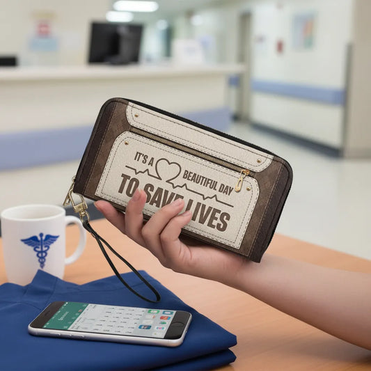 Beautiful Day To Save Lives - Personalized Nurse Leather Long Wallet