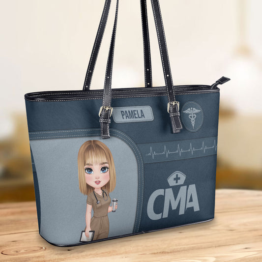 Nurse Heart Medical - Personalized Custom Nurse Leather Tote Bag