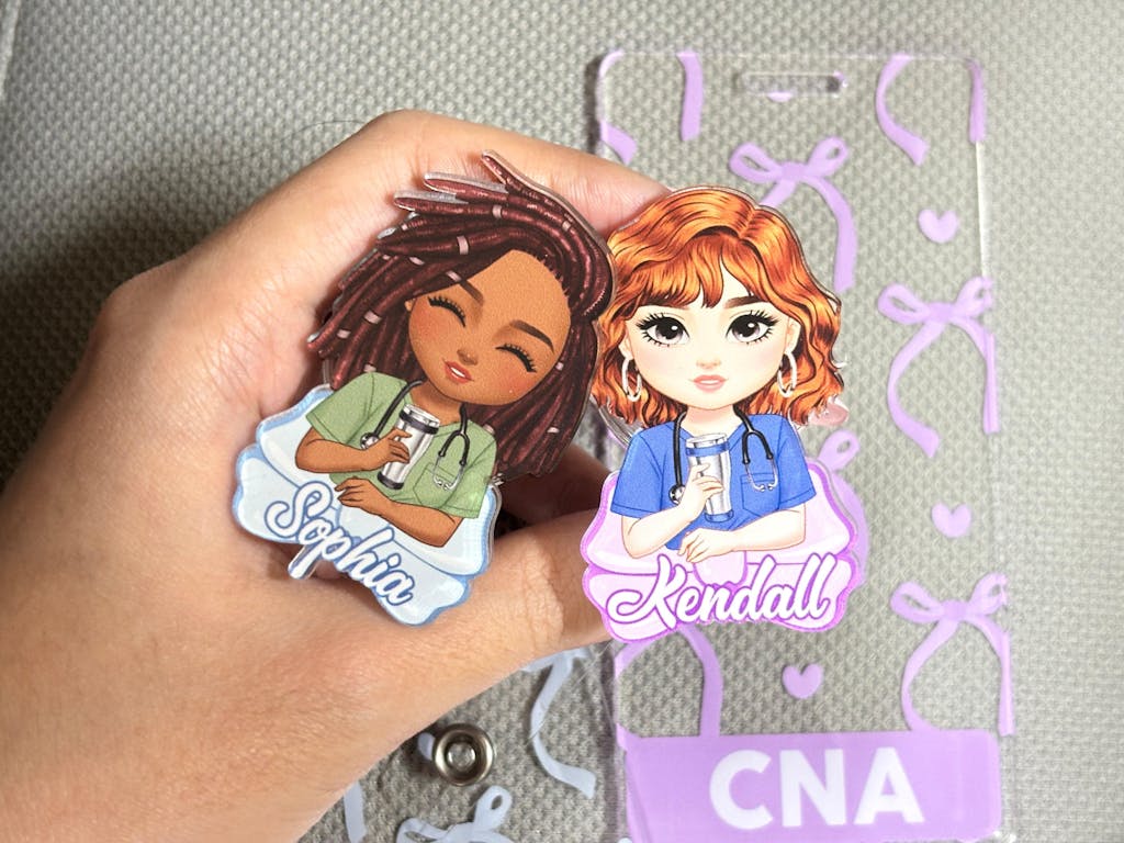 Every shift tells your story – let your badge do the same. Our Personalized Nurse Badge Reel & Buddy Set is durable for the busiest days, light to wear all shift, and designed to hold what you need while showing off your unique style.